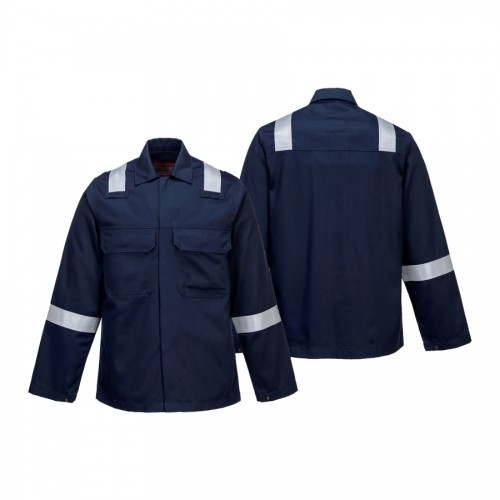 • O casaco Bizweld Iona oferece conforto, protecção e funcionalidade excelentes. Os recursos de design incluem o fecho frontal por botões de pressão, dois bolsos no peito com pala, bolso para telemóvel e fita reflectora resistente a chamas nos ombros e nas mangas para maior visibilidade.